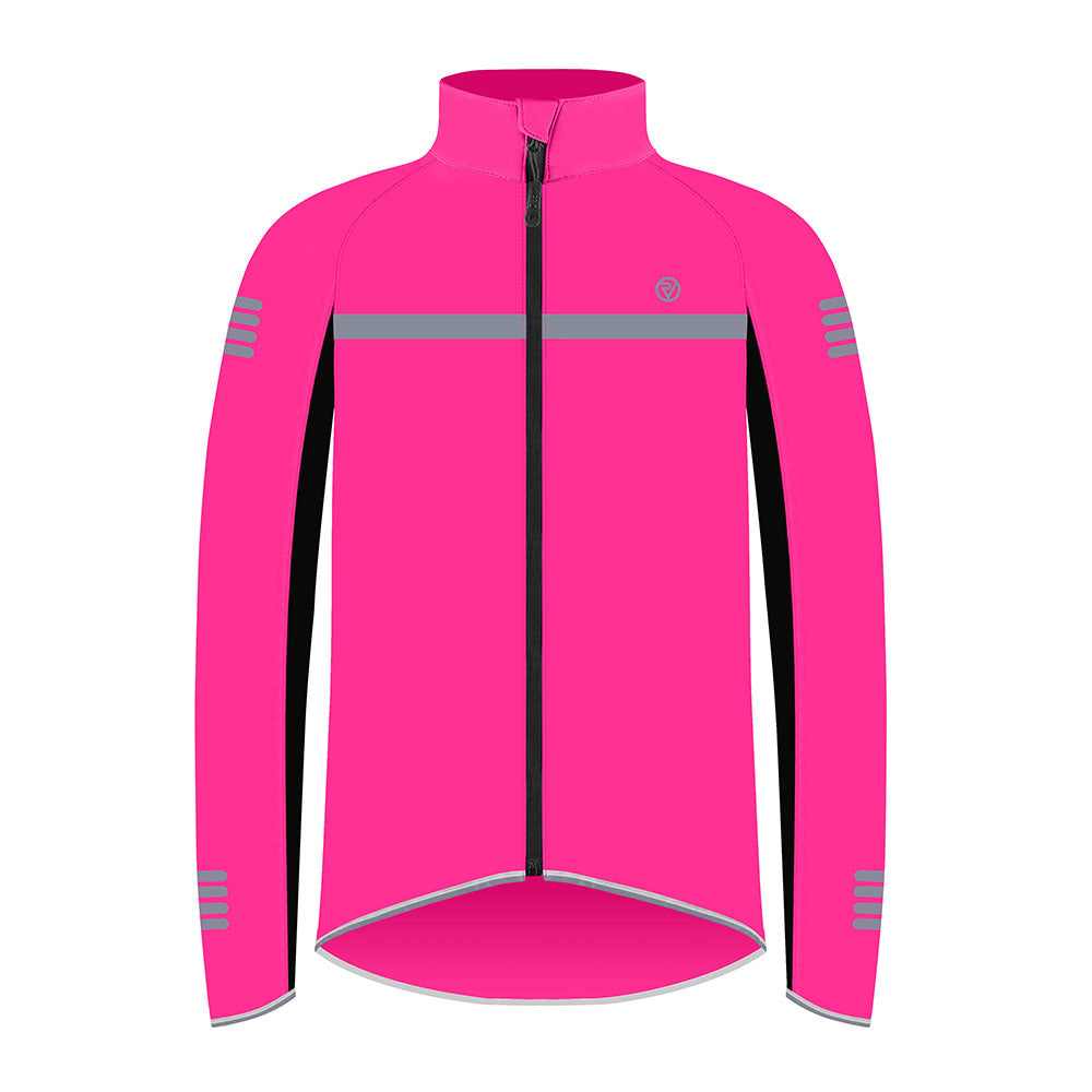 Men’s reflective full-zip cycling jacket with breathable panels for protection in low-light and wet conditions.