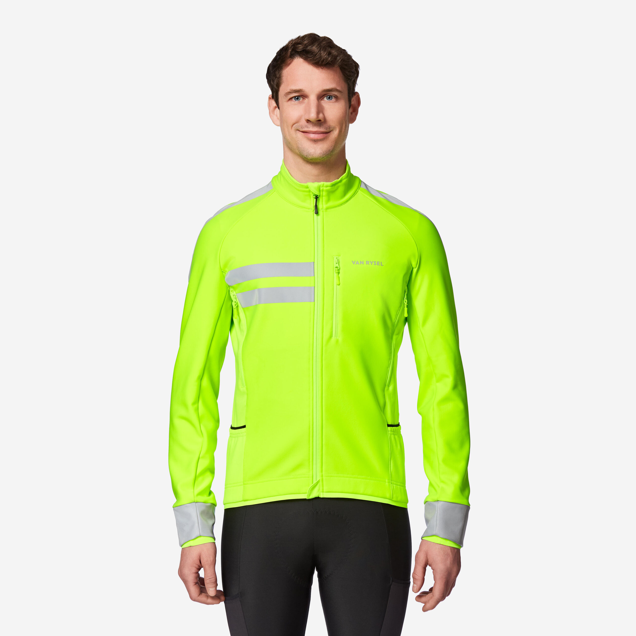 Men’s Winter Road Cycling Jacket Endurance EN17353: Certified for 360° high visibility, ensuring safety on roads day and night during cold weather rides.