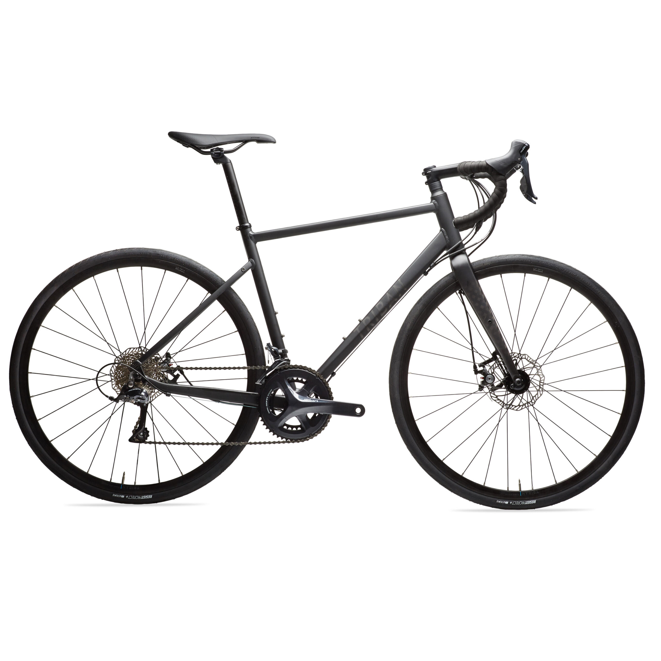 Road Bike Triban RC 500 Disc Brake – Black: Comfortable, precise road bike with Shimano Sora groupset, designed for longer rides.