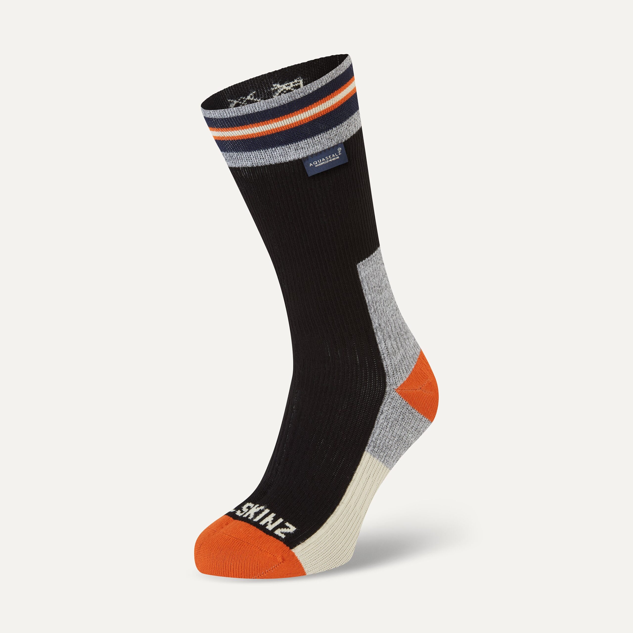 Surlingham offers a fully waterproof mid length sock designed for all weather conditions. aquasealz™ technology combines complete waterproofness with breathability and letting excess heat and perspiration escape. a merino wool blend interior is moisture-wicking for enhanced performance.